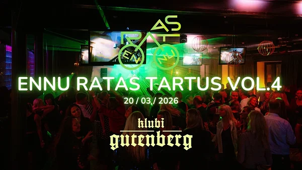 The grand and extremely popular capital dance party ENNU RATAS is coming to Tartu for the fourth time! A NIGHT full of energetic dance rhythms from all times and that in our most unique Club Gutenberg, Aparaaditehas!