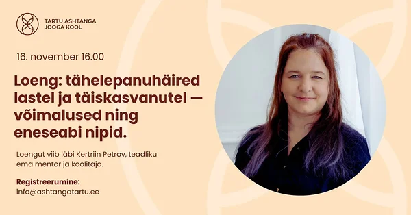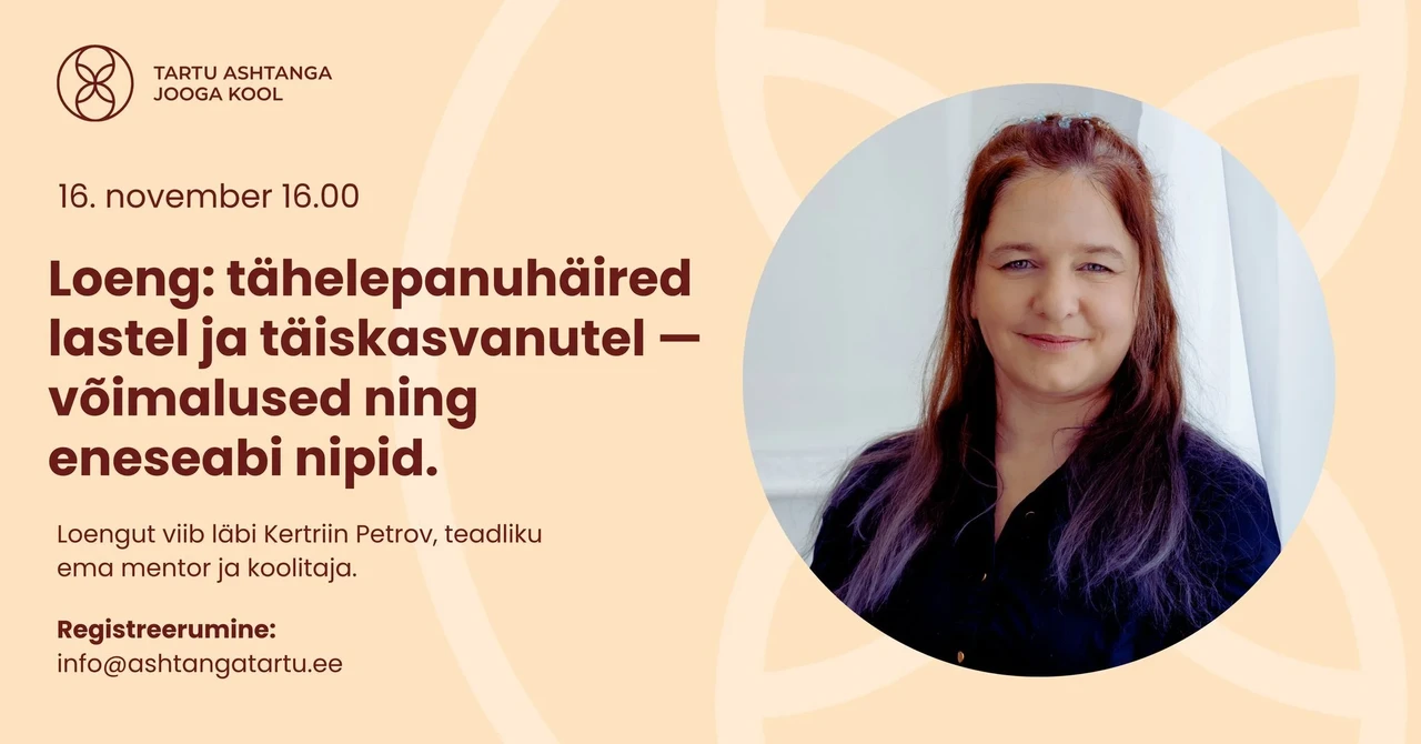 Loengut viib läbi Kertriin Petrov – teadliku ema mentor ja koolitaja, kes on aastaid toetanud lapsevanemaid ja noori eneseteadlikuma ning rahulikuma elu suunas. Kertriini teekond selleni sai alguse isiklikust kogemusest: tal endal on kogu elu olnud väljakutseid keskendumise ja tähelepanu hoidmisega. Kui ka tema vanemal lapsel ilmnesid sarnased raskused, otsustas Kertriin süvitsi uurida, miks mõne inimese tähelepanu töötab teisiti ja kuidas saab kodus ning koolis õppimist ja heaolu toetada. Tema loengud on soojad, ausad ja elulised – Kertriin ei räägi ainult teooriast, vaid jagab ka toimivaid eneseabi nippe ja mõtteviise, mis on aidanud nii teda kui paljusid teisi.