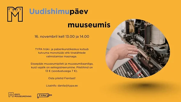 TYPA trüki- ja paberikunstikeskuses saab 16. novembril kell 13.00 ja kell 14.00 tutvuda monotüübi ehk tinatähtede valmistamise masinaga. Muuhulgas saab näha masina juurde kuuluvaid matriitse, mis on pärit 1963. aastast ja mida kasutati nõukogude ajal Tartu trükikojas Vallikraavi tänaval koos Monotype ladumismasinaga. Osalejad saavad ka ise proovida laduda lühikese lause või oma nime!